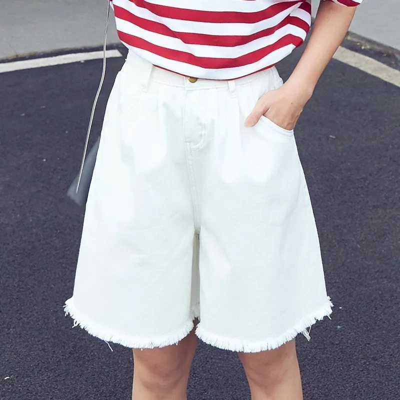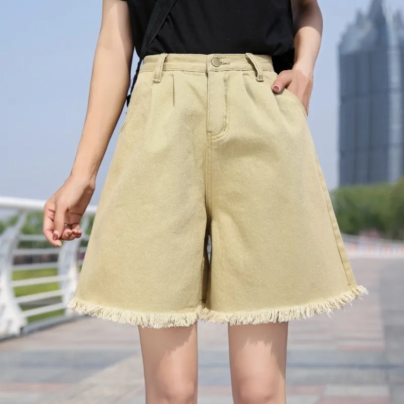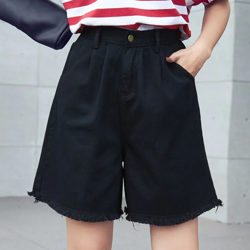 astounding Plus Size Female High Waist Denim Shorts Women Half Long Summer Ladies Hot Shorts Solid Tassel Jean