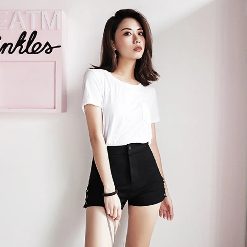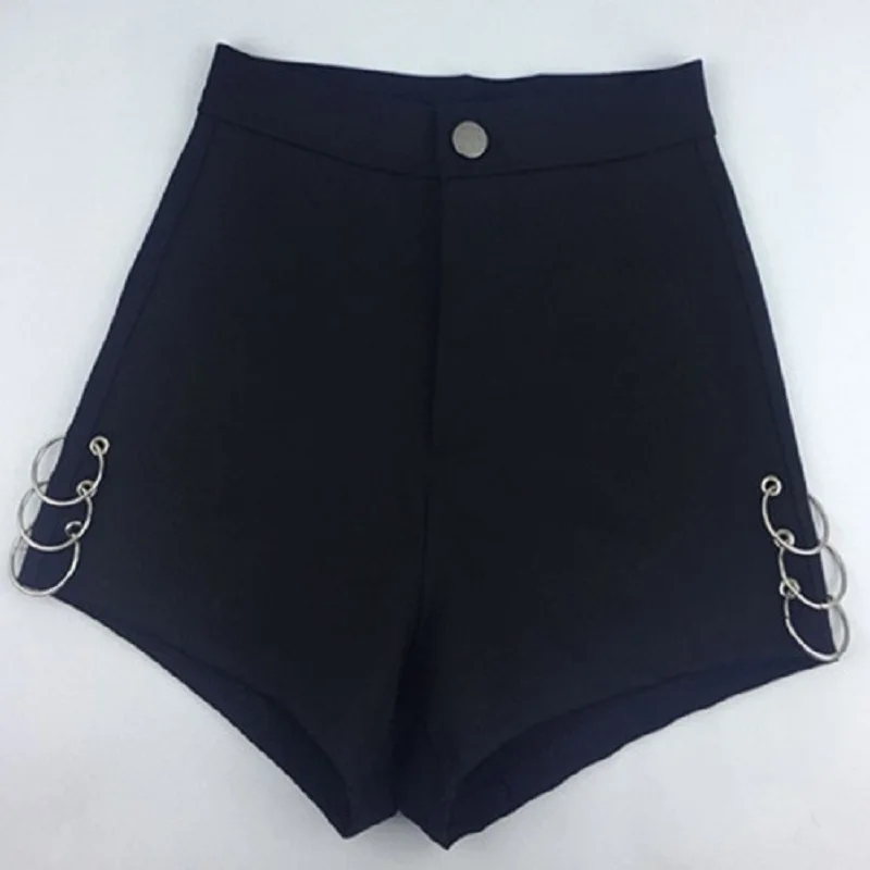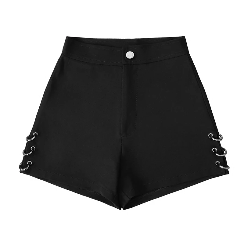 astounding Summer Black split Shorts For Women Loose Rings decoration Fashion Shorts Female