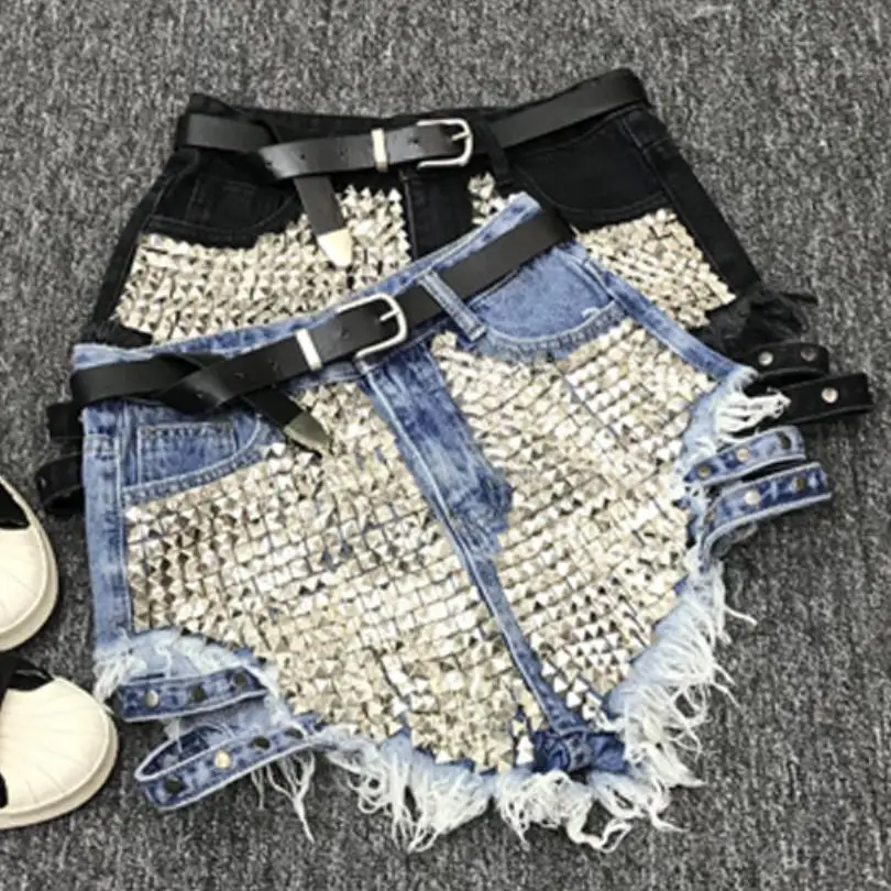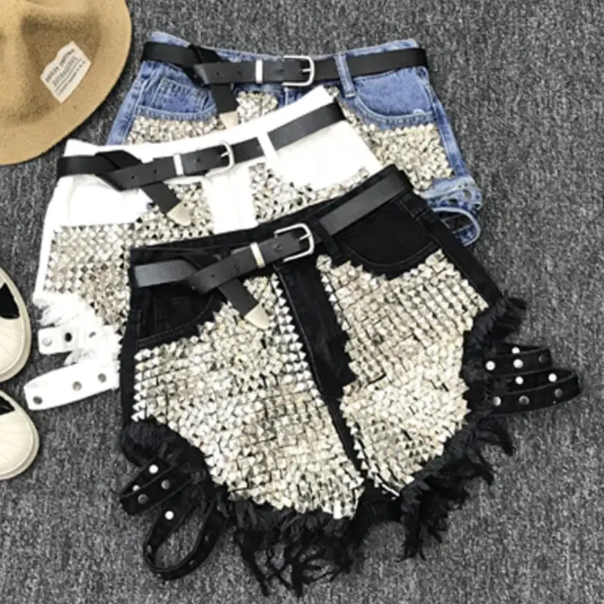 price cut Rivet denim shorts 2019 summer spring women high waist loose tassel jeans shorts